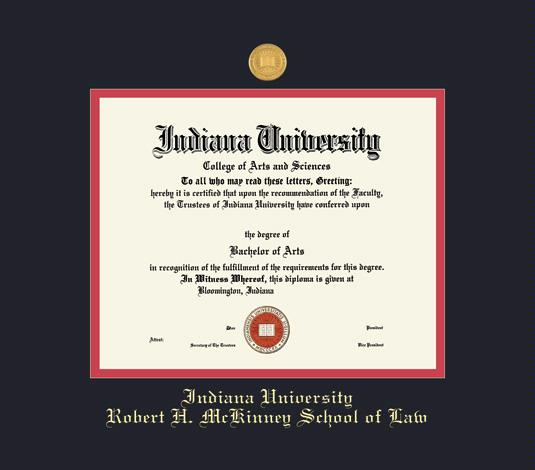 Indiana University Diploma - Robert H. McKinney School of Law (Pre 6/22) Frame with Medallion and Black and Red Double Mat and Gold Embossing