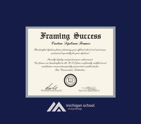 Michigan School of Psychology Diploma (8/18 to Present) Frame with Navy Blue and Gray Double Mat and Silver Embossing