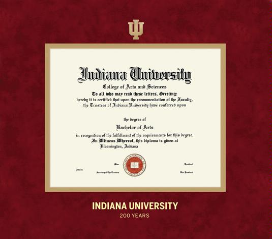 Indiana University Bicentennial Diploma - BA/MA/PhD Frame with Trident Medallion and Red Suede and Gold Double Mat and Gold Embossing
