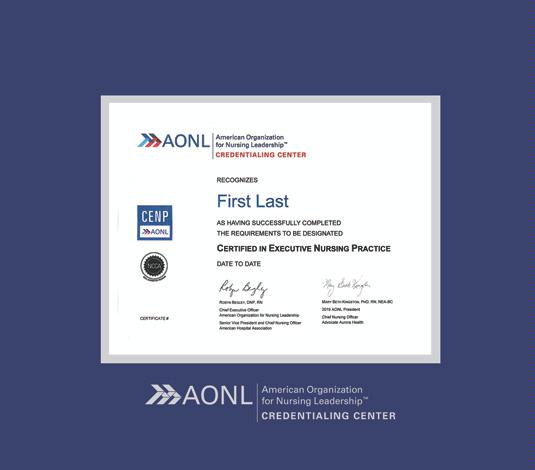 American Organization of Nursing Leaders Certificate (5/19 to Present) Frame with Royal Blue and Silver Double Mat and Silver Embossing