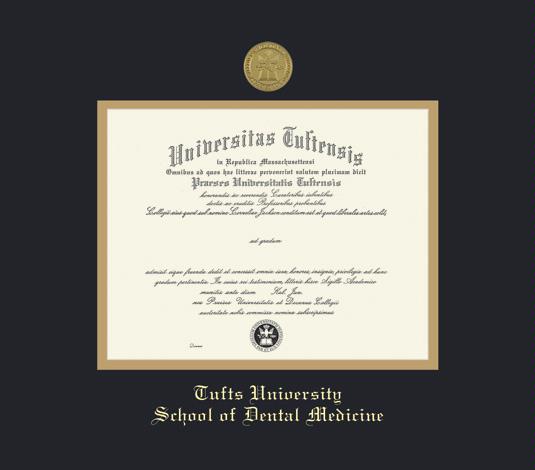 Tufts University Diploma - Dental (10/19 to Present) Frame with Medallion and Black and Gold Double Mat and Gold Embossing