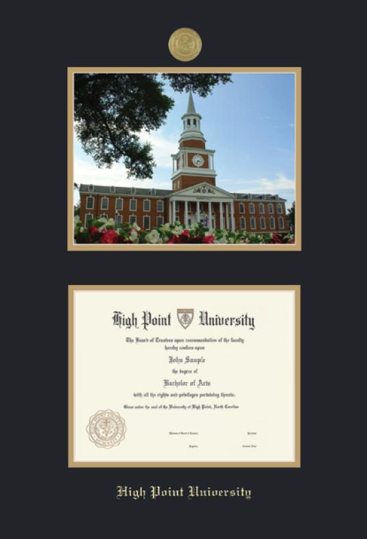 High Point University Diploma - BA and Photo Frame with Medallion and Black and Gold Double Mat and Gold Embossing