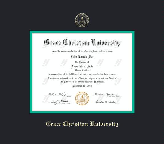 Grace Christian University Diploma (7/18 to Present) Frame with Black and Teal Double Mat and Gold Embossing