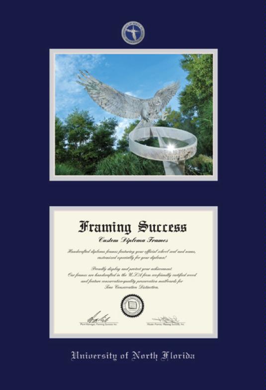 University of North Florida Diploma - BA (2020 to Present) and Photo Frame with Medallion and Navy Blue and Silver Double Mat and Silver Embossing