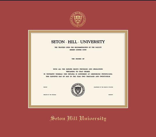 Seton Hill University Diploma (8/17 to Present) Frame with Red and Gold Double Mat and Gold Embossing