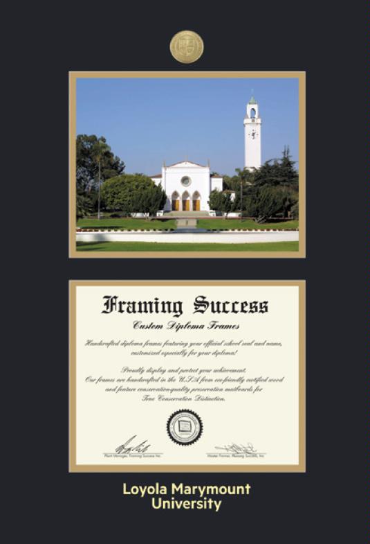 Loyola Marymount University Diploma (2020 to Present) and Photo Frame with Medallion and Black and Gold Double Mat and Gold Embossing