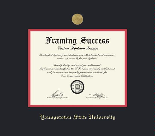 Youngstown State University Diploma - PhD Frame with Medallion and Black and Red Double Mat and Gold Embossing