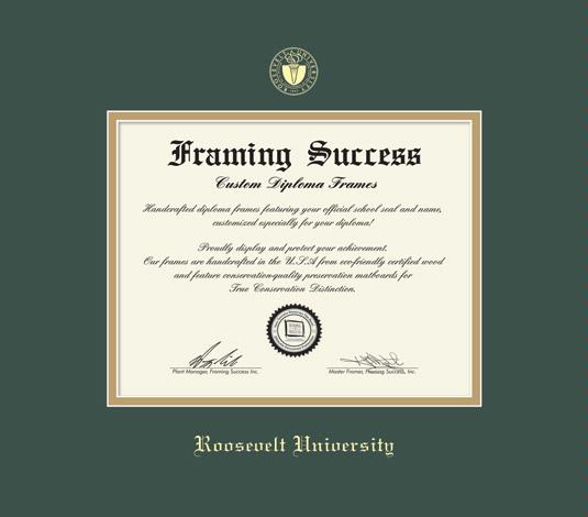 Roosevelt University Diploma (1/10 to Present) Frame with Green and Gold Double Mat and Gold Embossing