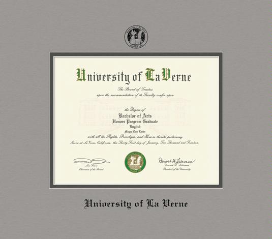 University of La Verne Diploma - BA/MA Frame with Paloma and Moonrock Double Mat and Black Embossing