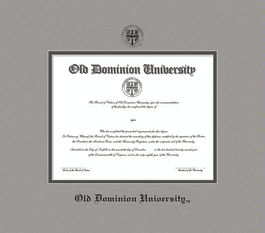 Old Dominion University Diploma Frame with Paloma and Moonrock Double Mat and Black Embossing