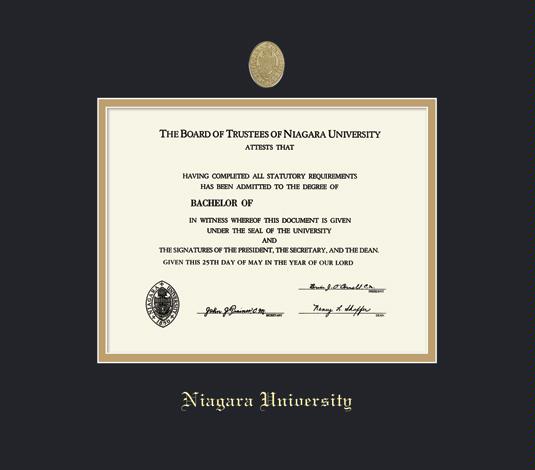 Niagara University Diploma - BA/MA Frame with Medallion and Black and Gold Double Mat and Gold Embossing