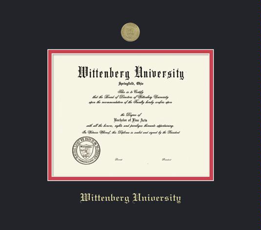 Wittenberg University Diploma Frame with Medallion and Black and Red Double Mat and Gold Embossing