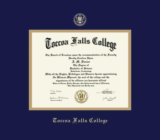 Toccoa Falls College Diploma Frame with Navy Blue and Gold Double Mat and Gold Embossing