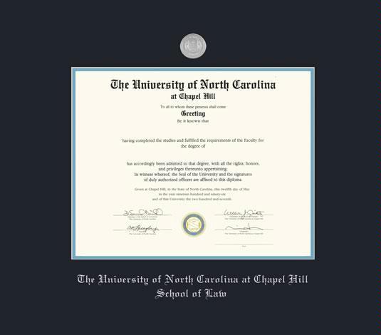 University of North Carolina at Chapel Hill Diploma - Law with Silver Medallion Frame Featuring a Black and Sky Blue Double Mat with Silver Embossing