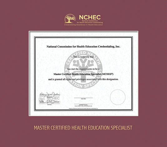 National Commission for Health Education Credentialing Certificate - Master Health Ed Specialist (2020 to Present) Frame with Maroon Mat and Gold Embossing