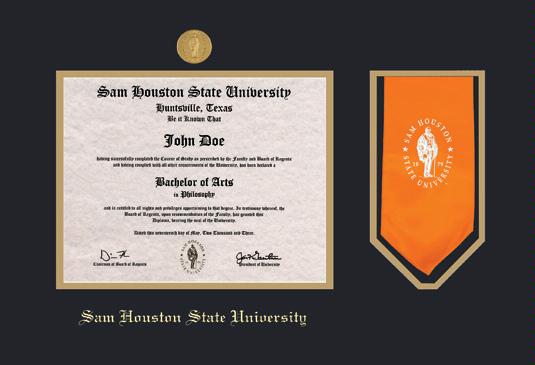 Sam Houston State University Diploma with Stole Opening Frame with Medallion and Black and Gold Double Mat and Gold Embossing