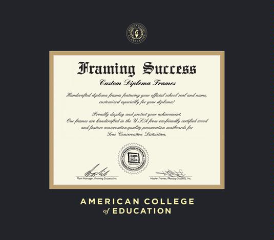 American College of Education Diploma (6/20 to Present) Frame with Black and Gold Double Mat and Gold Embossing
