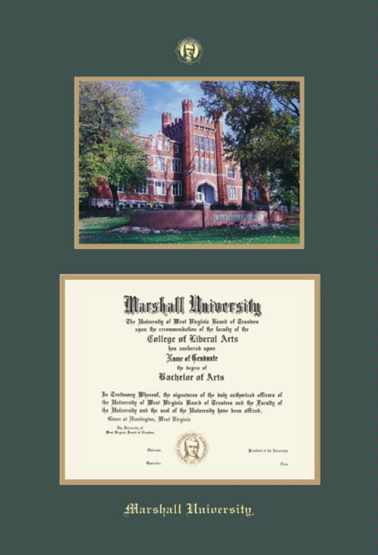 Marshall University Diploma - Doctorate (6/20 to Present) and Photo Frame with Green and Gold Double Mat and Gold Embossing