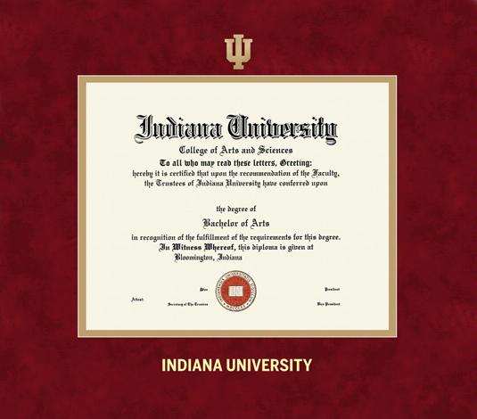 Indiana University Diploma - BA/MA/PhD Frame with Trident Medallion and Red Suede and Gold Double Mat and Gold Embossing