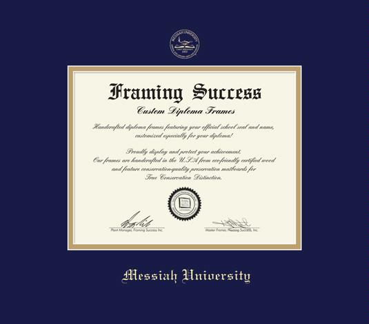 Messiah University Diploma - MA (8/20 to Present) Frame with Navy Blue and Gold Double Mat and Gold Embossing