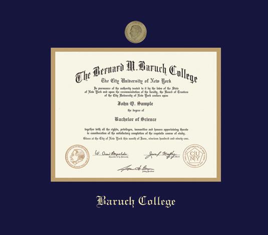 Baruch College Diploma Frame with Medallion and Navy Blue and Gold Double Mat and Gold Embossing
