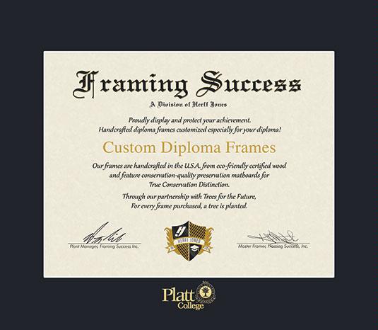 Platt College Certificate Frame with Dark Black Mat and Gold Embossing