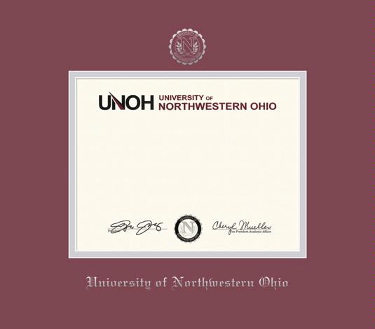 University of Northwestern Ohio Diploma - MA Frame with Maroon and Silver Double Mat and Silver Embossing