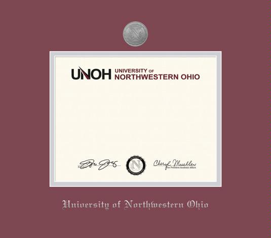 University of Northwestern Ohio Diploma - Assoc/BA Frame with Medallion and Maroon and Silver Double Mat and Silver Embossing