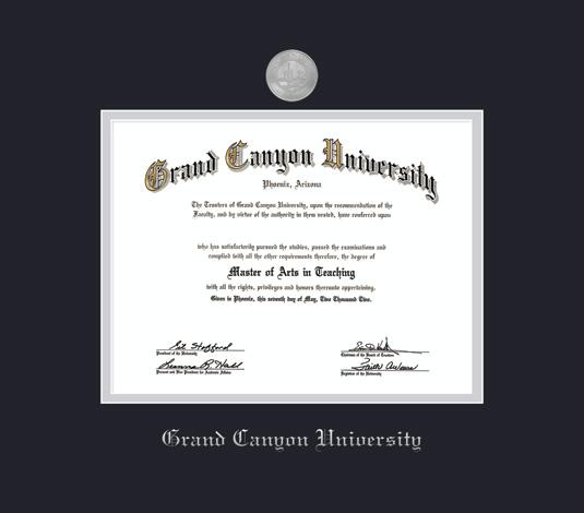 Grand Canyon University Diploma - Doctorate Frame with Medallion and Black and Silver Double Mat and Silver Embossing