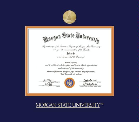 Morgan State University Diploma - PhD Frame with Gold Medallion and Navy Blue and Orange Double Mat and Gold Embossing