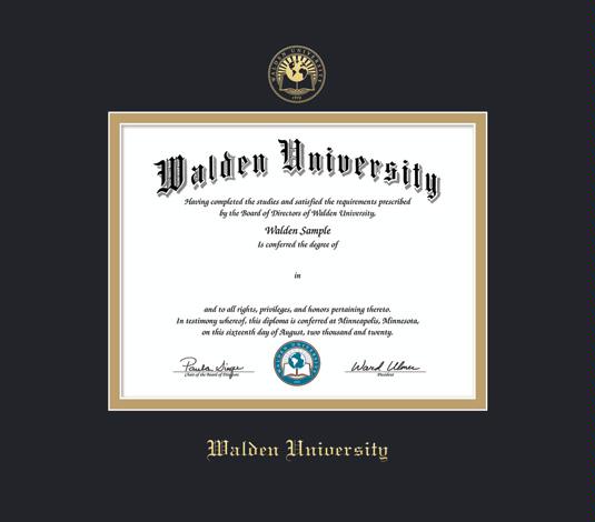 Walden University Certificate (8.5 x 11) (9/20 to Present) Frame with Black and Gold Double Mat and Gold Embossing