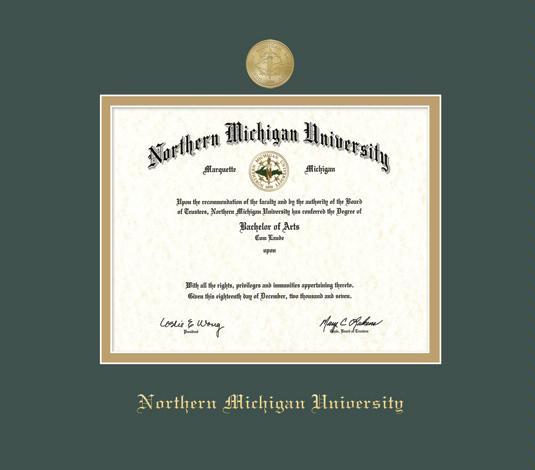 Northern Michigan University Diploma Frame with Gold Medallion and Green and Gold Double Mat and Gold Embossing