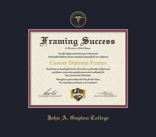 John A. Gupton College Diploma Frame with Black and Maroon Double Mat and Gold Embossing