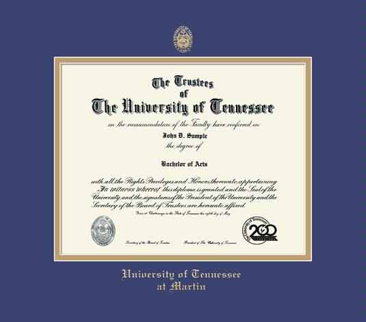 University of Tennessee at Martin Diploma (Pre 8/22) Frame with Royal Blue and Gold Double Mat and Gold Embossing