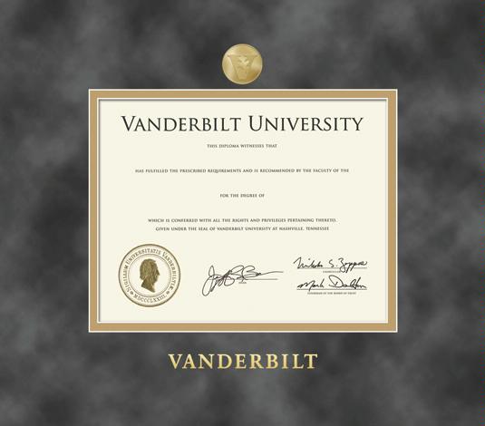 Vanderbilt University Diploma - BA/MA (1/05 to 6/22) Frame with Gold Medallion and Grey Suede and Gold Double Mat and Gold Embossing