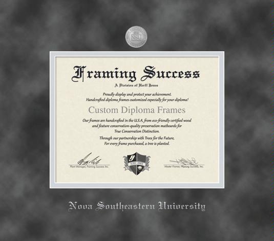 Nova Southeastern University Diploma (1/14 to Present) Frame with Medallion and Grey Suede and Silver Double Mat and Silver Embossing