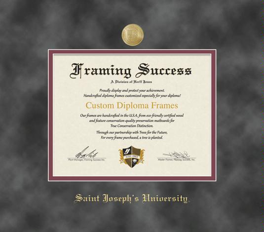 Saint Joseph's University Diploma Frame with Medallion and Grey Suede and Maroon Double Mat and Gold Embossing