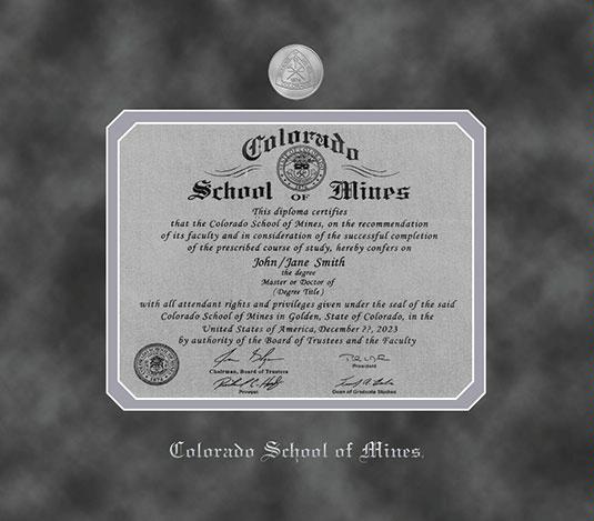 Colorado School of Mines Diploma - BA Metal Frame with Medallion and Grey Suede and Silver Double Mat and Silver Embossing