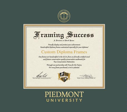 Piedmont University Diploma - BA/MA (2021 to Present) Frame with Green and Gold Double Mat and Gold Embossing