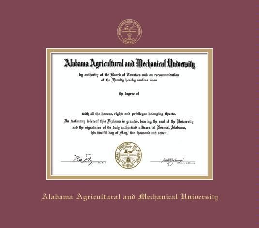 Alabama Agricultural and Mechanical University Diploma - PhD Frame with Maroon and Gold Double Mat and Gold Embossing