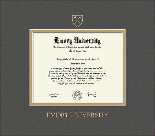 Emory University Diploma - BA/MA Frame with Moonrock and Gold Double Mat and Gold Embossing