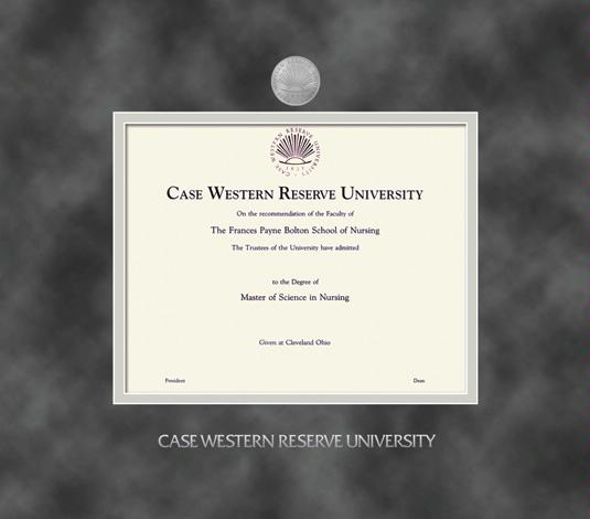 Case Western Reserve University Diploma Frame with Medallion and Grey Suede and Silver Double Mat and Silver Embossing