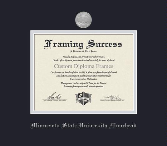 Minnesota State University Moorhead Diploma (6"h x 8"w) Frame with Medallion and Black and Silver Double Mat and Silver Embossing