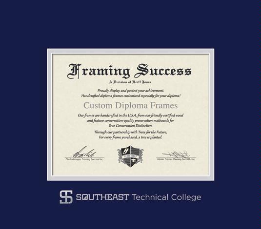Southeast Technical College Diploma (2021 to Present) Frame with Navy Blue and Silver Double Mat and Silver Embossing
