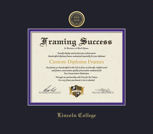 Lincoln College Diploma Frame with Black and Purple Double Mat and Gold Embossing