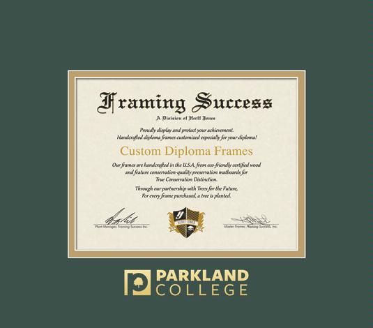 Parkland College Diploma Frame with Green and Gold Double Mat and Gold Embossing