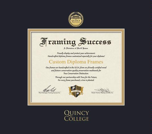 Quincy College Diploma Frame with Black and Gold Double Mat and Gold Embossing