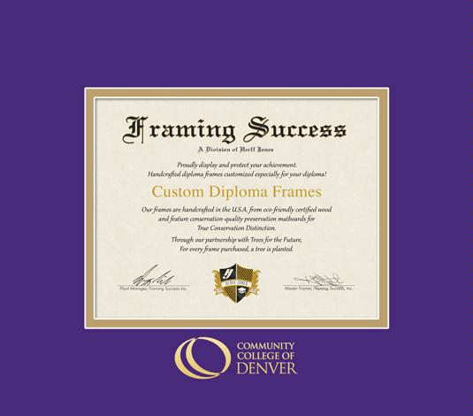 Community College of Denver Diploma (2021 to Present) Frame with Purple and Gold Double Mat and Gold Embossing