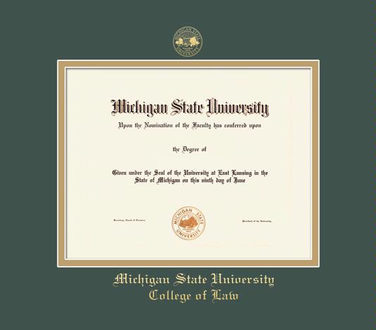 Michigan State University Diploma - Law (2021 to Present) Frame with Green and Gold Double Mat and Gold Embossing