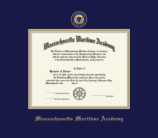 Massachusetts Maritime Academy Diploma - BA (8/21 to 6/24) Frame with Navy Blue and Gold Double Mat and Gold Embossing